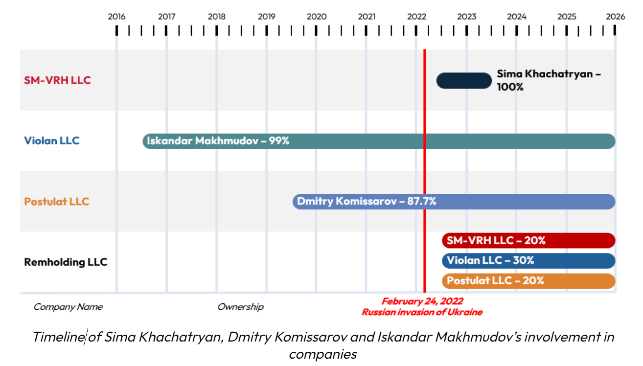 Cronologia implicării lui Sima Khachatryan, Dmitry Komissarov și Iskandar Makhmudov în companii