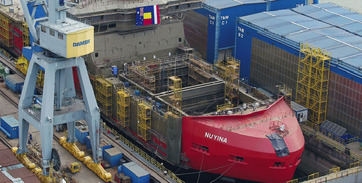 Spărgătorul de gheață australian „RSV Nuyina” a fost construit între 2015 și 2021 la șantierul naval Damen din Galați și testat ulterior în Țările de Jos. La momentul inaugurării, a fost descris de autoritățile de la Canberra drept cel mai avansat spărgător de gheață din lume. Nava, alcătuită din 229 de secțiuni asamblate modular, poate opera la temperaturi de până la -40°C și este utilizată pentru cercetare științifică în Antarctica.