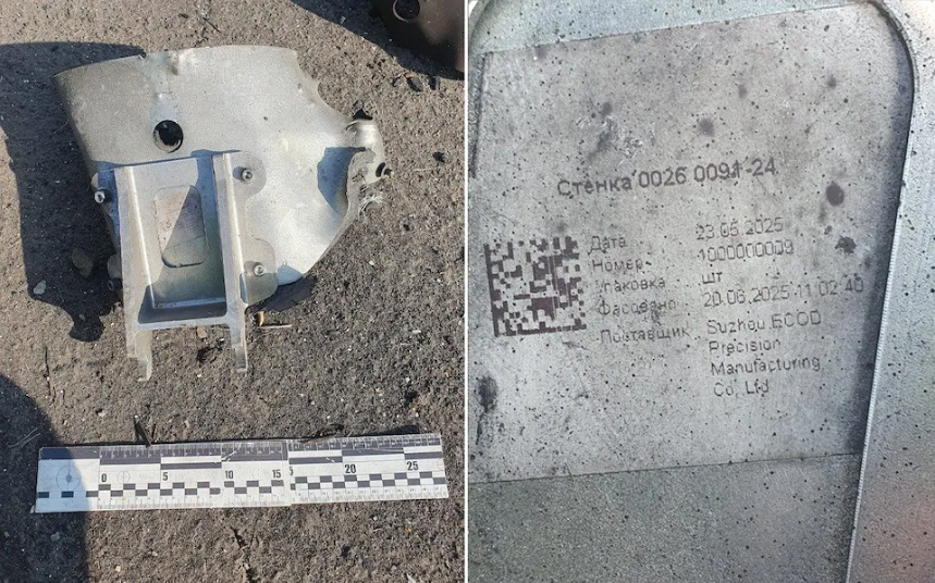 O zi mai târziu, Andrii Sybiha, ministrul ucrainean de Externe, a postat online imagini cu o componentă chineză fabricată de Suzhou ECOD Precision Manufacturing – cu inscripția clar imprimată pe piesă – spunând că a fost recuperată dintr-o dronă de luptă Geran-2 [clona rusă a dronei iraniene Shahed-136], doborâtă în timpul unui recent atac asupra Kievului.