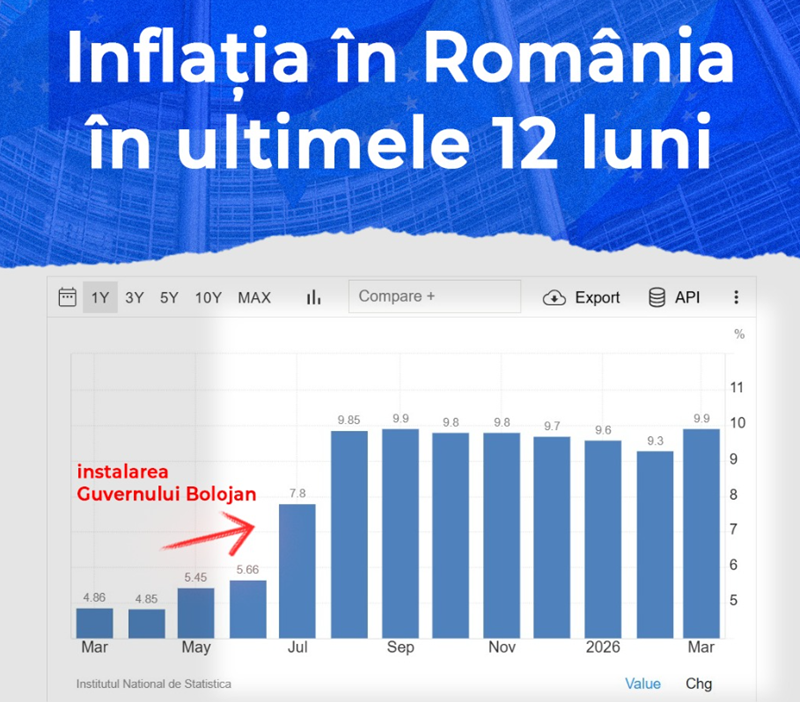 „Această evoluție nu este întâmplătoare. Din iulie 2025, momentul instalării Guvernului Bolojan, inflația a crescut brusc de la 5.66% în iunie la aproape 8%, stabilizându-se ulterior la un nivel ridicat, în jur de 9-10%.