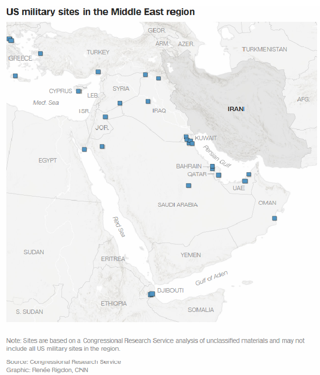 Se crede că Iranul are mii de rachete și drone în raza de acțiune a trupelor americane staționate în mai multe țări din Orientul Mijlociu și a amenințat că le va ataca, precum și pe Israel.