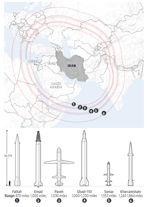 Drona sinucigașă Shahed a Iranului, de exemplu, s-a dovedit a fi un instrument distructiv în războiul Rusiei din Ucraina. Regimul iranian a dezvoltat, testat sau desfășurat, de asemenea, peste 20 de tipuri de rachete balistice, inclusiv sisteme cu rază scurtă, medie și lungă de acțiune, capabile să amenințe ținte aflate până în sudul Europei.