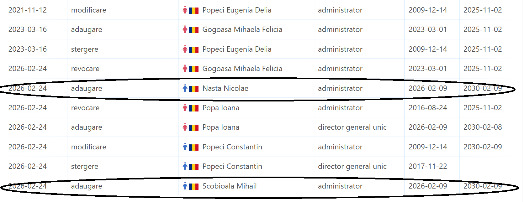 Din ianuarie 2024, după ratificarea Deciziei Consiliului de Administrație din 18 noiembrie 2023, Andrei Scobioală și Sergei Glinka au fost înregistrați ca beneficiari efectivi finali ai Automecanica SA.